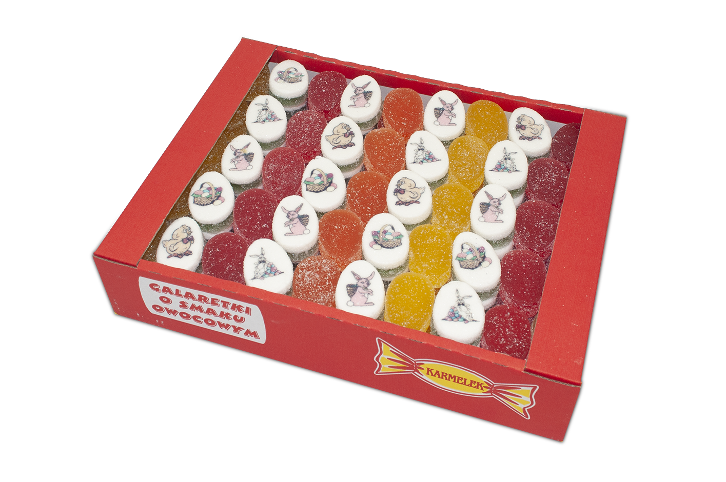 Zajmujemy się produkcją słodkich wyrobów takich jak: galaretki, czekoladki, landrynki, oraz duża gama innych produktów sezonowych. Na życzenie klienta jesteśmy w stanie w pełni spersonalizować każdy produkt. Posiadamy bardzo dużą różnorodność smaków, kształtów oraz kolorów przygotowywanych produktów.